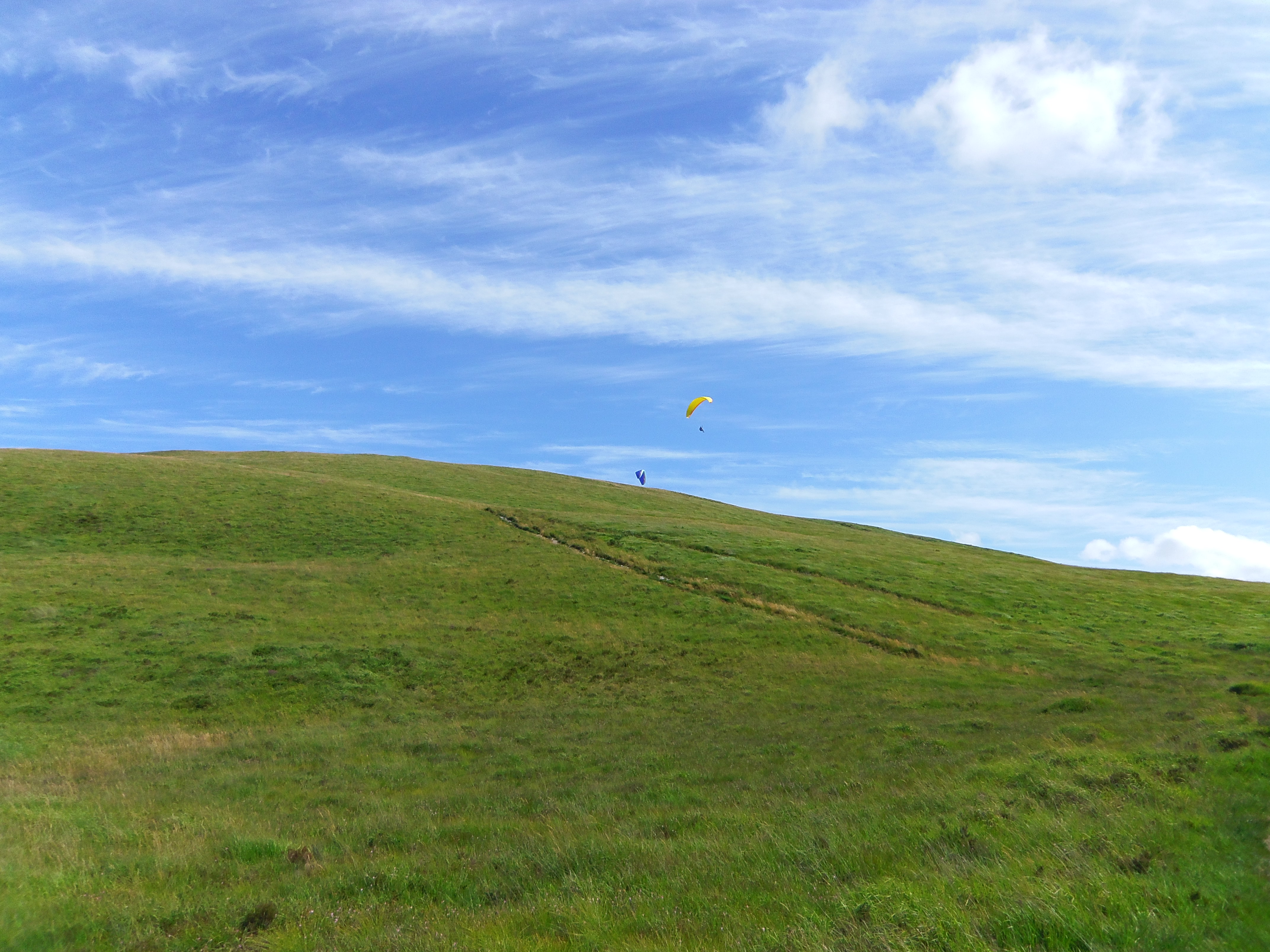 Super journée, 66 km de canal, puis sortie à Carhaix pour rejoindre la voie verte numéro 7. Je croise une vipère péliade dès que je quitte le canal, et manque de rouler dessus. Après Poullaouen, je rejoins de nouveau le GR37 pour le reste de la journée. Ce parcours est commun avec le GR380 qui est excellent à VTT : belles routes larges, mais avec tout de même des passages de portage. Exemple : les escaliers en sortant du chemin des chaos de Huelgoat. 20 kg de VTT à porter plus presque 10 kg de sac à dos, je m'aide de la rambarde de l’escalier. Enfin, je bivouaque dans un petit champ le long du GR en plein Menez Du.